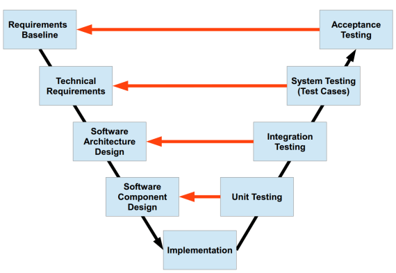 The V-Model adalah model SDLC dimana pelaksanaan proses yang terjadi secara berurutan dalam bentuk-V. Dikenal juga sebagai model Verifikasi dan Validasi. The V-Model merupakan perluasan dari waterfall model dan didasarkan pada asosiasi dari fase pengujian untuk setiap tahap pengembangan yang sesuai.